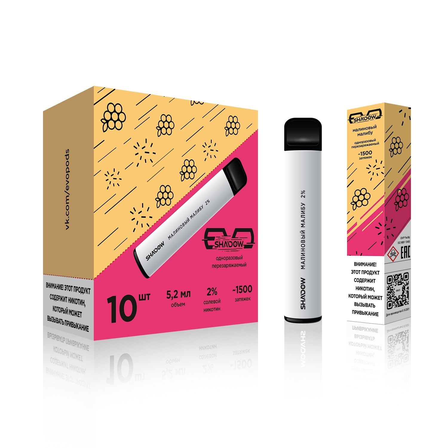 Электронная сигарета EVO Pods Малиновый Малибу (1500 затяжек)