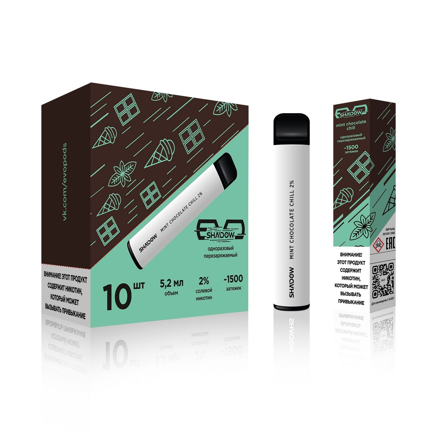 Электронная сигарета EVO Pods Мята Шоколад (1500 затяжек)