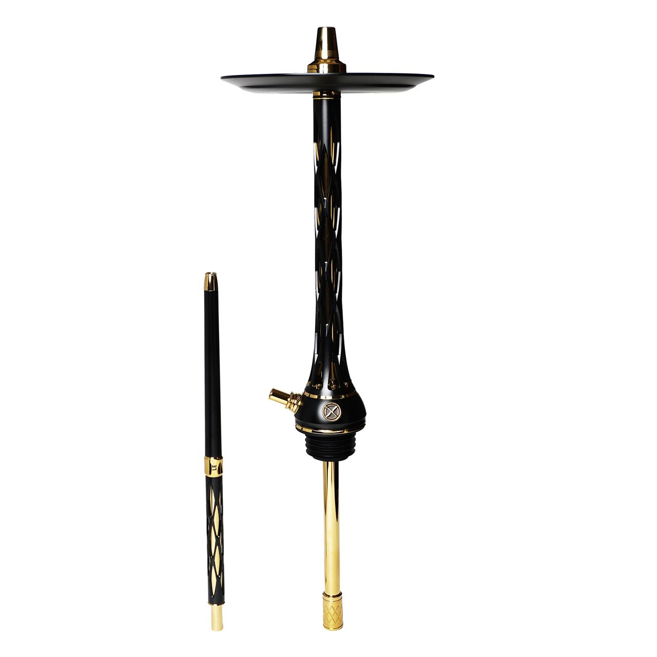 Модель Blade Hookah One M доступна в изысканной черно-золотой расцветке. В комплекте идет шахта с регулируемым диффузером, блюдце, мундштук и фирменный мелассоуловитель.