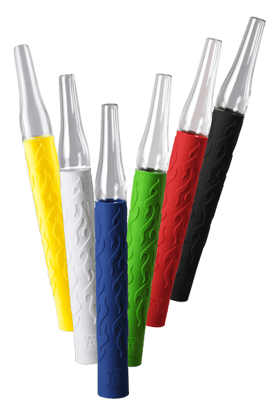 Выполнен из закаленного прочного стекла и оснащен резиновой рукояткой с узором в виде пламени, которая надежно защищает мундштук от повреждений.