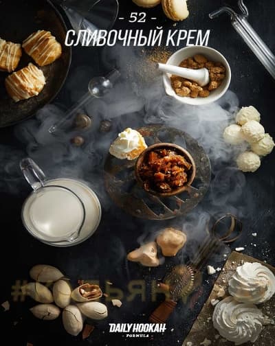 Daily Hookah 52 (Сливочный Крем) - вкус нежного сладкого сливочного крема из французской кухни. Для любителей нежного сладкого аромата. Можно миксовать с фруктами.